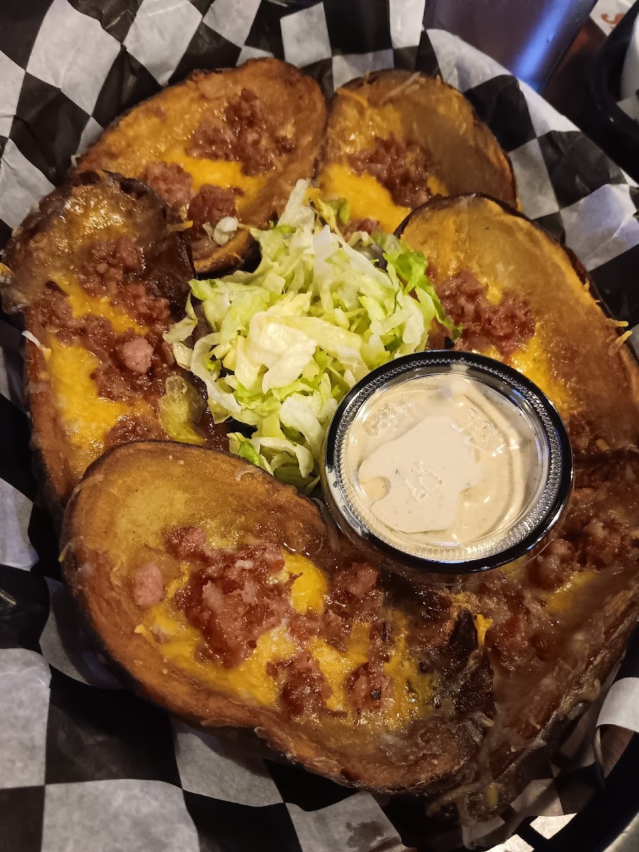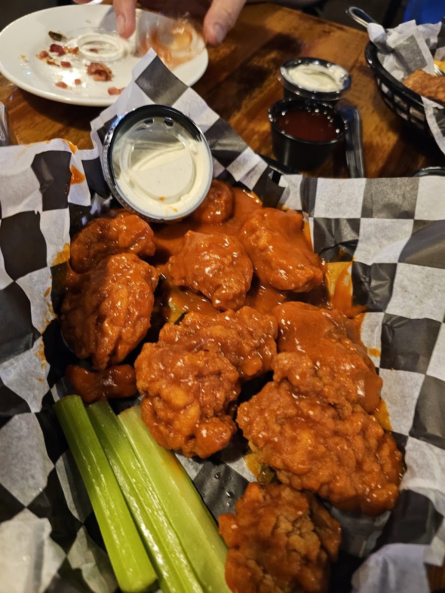 Traveling and this popped up. We were seated immediately. This place is big and has plenty of room. Booths, high tops, tabkes, the bar, and a party room too. Plenty of room between tables. Excellent atmosphere with tons of TVs and even TVs at every single booth. They were playing everything; boxing, racing, baseball, monster trucks. The restrooms were clean and had plenty room. The waitress took our drinks and appetizers immediately and I'm not exaggerating when I say that our apps were literally at the table in under 5 minutes! They were delicious and hot...we ordered cheeseballs and potato skins. The cheeseballs seemed homemade and we loved them. The ranch was AWESOME too. We were super unsure what to get and wanted to try the chislic....so we did and we were so glad. It was so tender, juicy, and perfectly seasoned. We also ordered boneless Buffalo wings that were covered in thick Buffalo sauce. I loved them. Seriously this place was well worth the stop. Our drinks were constantly refilled, our waitress was sweet and eager to ensure we were happy. I live 2 hours away and we will definitely be making the trip to come back just to eat here. So good, excellent service, fun atmosphere, clean restrooms, plenty of parking, good selection on the menu, all around EXCELLENT! We are stuffed and brought home our 2 boxes to share with family to try our new favorite place!
