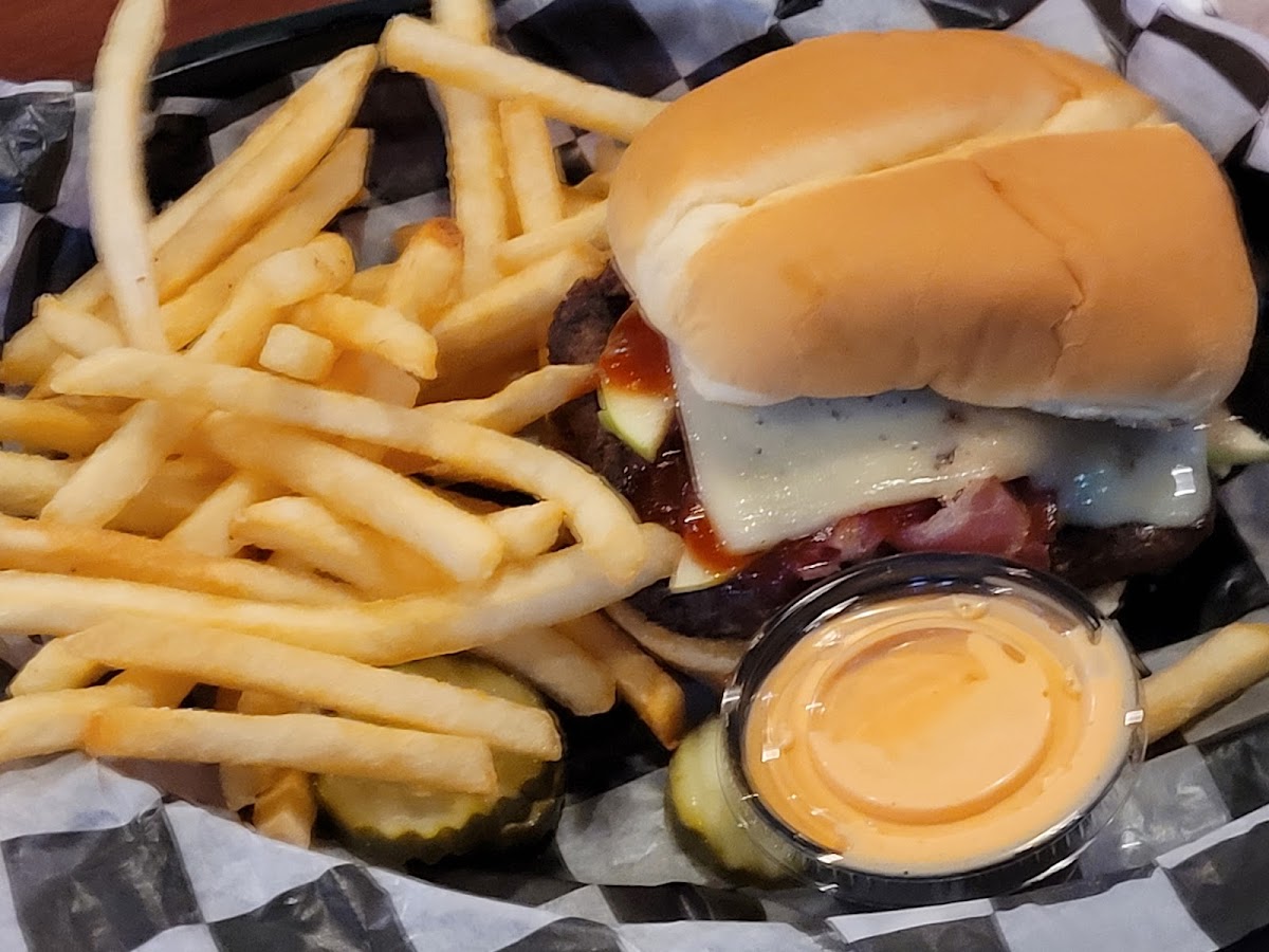 Excellent hamburgers! My wife and I split the ranch burger and BBQ apple burger. Bothered amazing! This was our first time here, and we will be back for another future date. This would be a good place to watch sports for there is plenty of TVs (big screens) and good service.